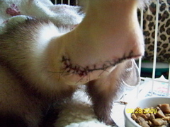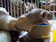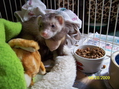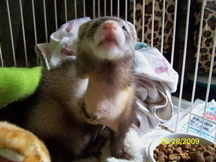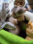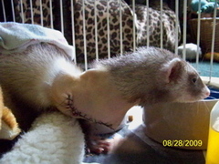 Here are a few pictures taken post op of Evie the tripod ferret.